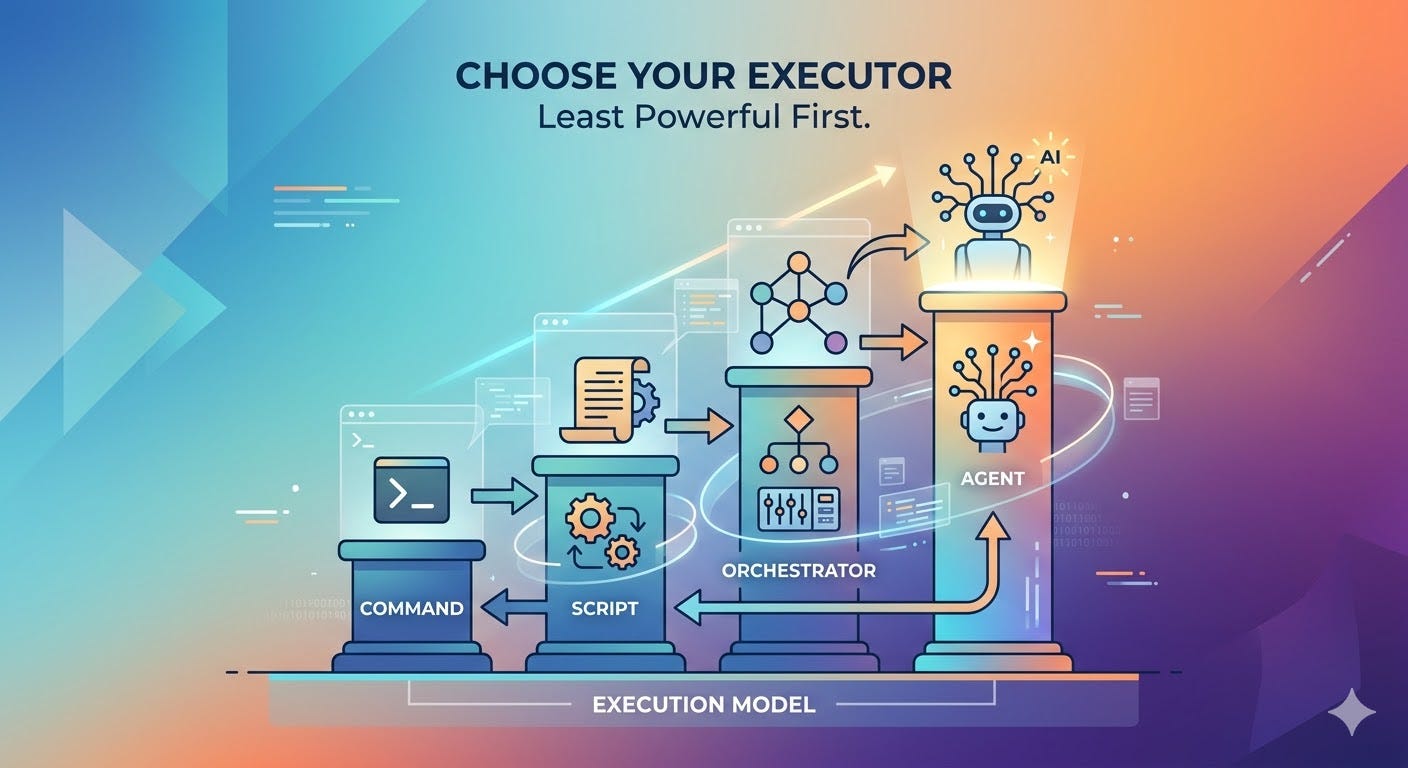 The core idea is simple: use the least powerful executor that can reliably do the job.